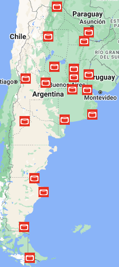 Nodos de la red de transporte de hidrocarburos. Información provista por las empresas del sector según lo establecido por las planillas 20 y 21 de la Resolución 319/93 de la Secretaría de Energía.