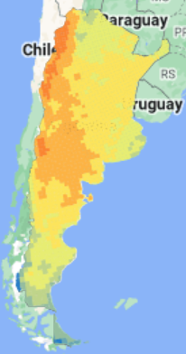 En la presente capa se muestra la distribución de irradiancia horizontal mensual del mes de junio y a nivel nacional en kWh/m2 por día.
